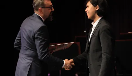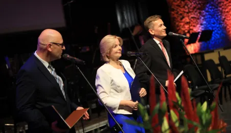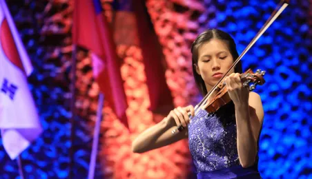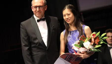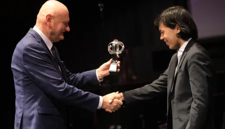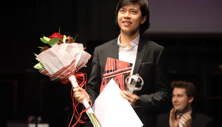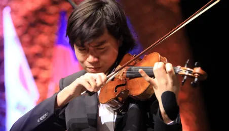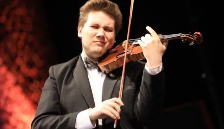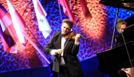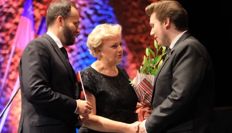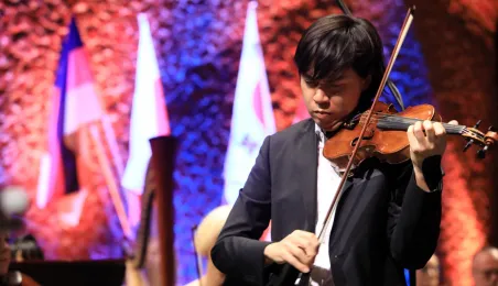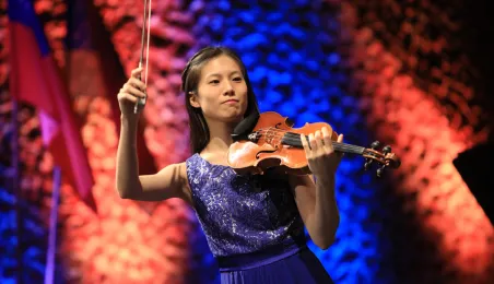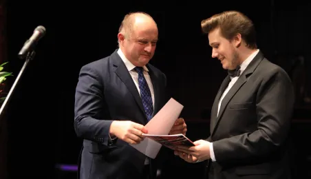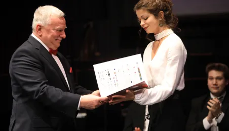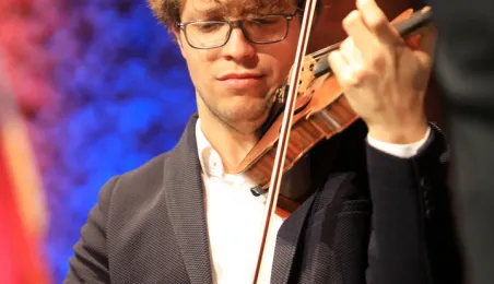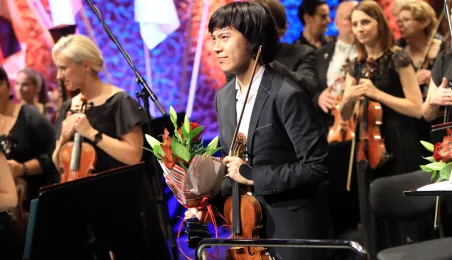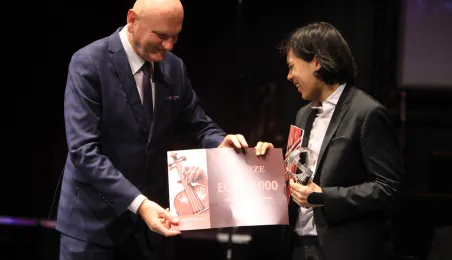 Zwycięzcą 5. Międzynarodowego Festiwalu i Konkursu Skrzypcowego im. Karola Lipińskiego został Elias David Moncado (Niemcy). Koncert finałowy, podczas którego wręczono nagrody główne oraz pozaregulaminowe, odbył się 13 października 2019 roku w CKK Jordanki. Fot. Sławomir Kowalski