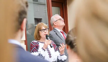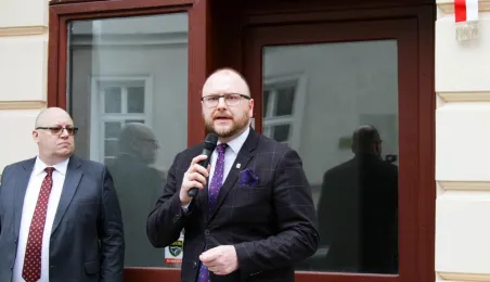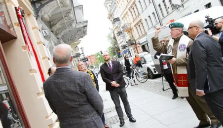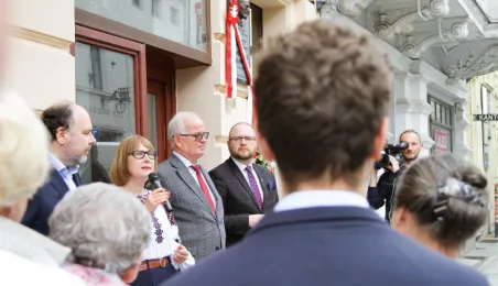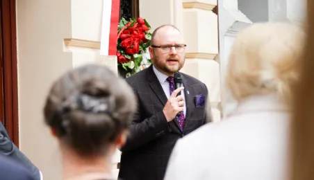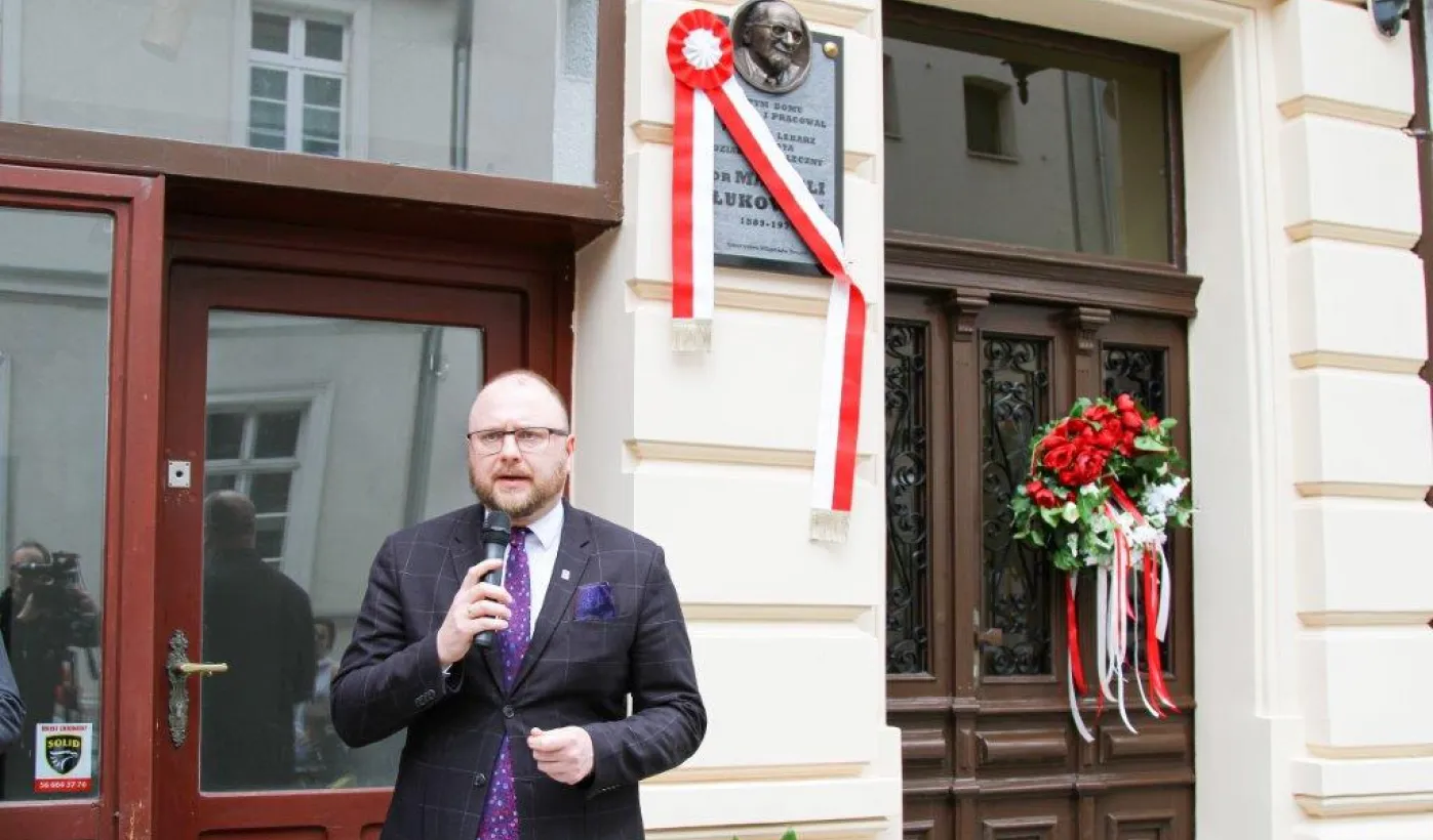 We wtorek 16 maja 2023 r. odbyło się uroczyste odsłonięcie tablicy pamiątkowej poświęconej doktorowi medycyny Marcelemu Łukowiczowi. Zdj. Paula Gałązka