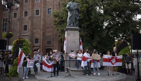 17 sierpnia 2020 r. pod pomnikiem Mikołaja Kopernika odbył się wiec poparcia dla protestów społecznych na Białorusi. W wydarzeniu wziął udział zastępca prezydenta Torunia Zbigniew Fiderewicz.