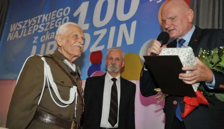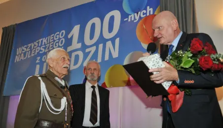 100 lat skończył 19 października 2015 r. mieszkaniec Torunia major Franciszek Karpa. Z tej okazji jubilata odwiedzili z upominkiem prezydent Torunia Michał Zaleski i szefowa USC Katarzyna Pułkownik. Jubilat - wciąż aktywny członek Stowarzyszenia 11 Pułku Ułanów Legionowych w Ciechanowie - z humorem i w znakomitej formie świętował swoje urodziny w hotelu Filmar. Fot. Małgorzata Litwin