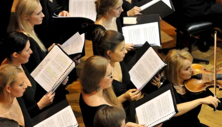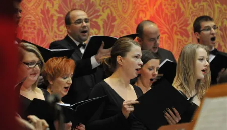 Toruński chór "Astrolabium" świętował 15-lecie istnienia 30 listopada 2014 r. w Dworze Artusa. Jubileusz uczciła polska prapremiera Magnificat argentyńskiego kompozytora Martina Palmeriego, który osobiście zasiadł za fortepianem. Na toruńskiej scenie pojawili się również: znakomity włoski bandoneonista Mario Stefano Pietrodarchi, dwie solistki, absolwentki Zespołu Szkół Muzycznych w Toruniu i Akademii Muzycznej w Bydgoszczy: Agata Schmidt – mezzosopran oraz Aleksandra Turalska – sopran, niegdyś chórzystka "Astrolabium". Towarzyszyły im Capella Bydgostiensis i Chór Astrolabium pod dyrekcją Kingi Litowskiej. Fot. Małgorzata Litwin