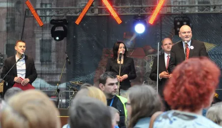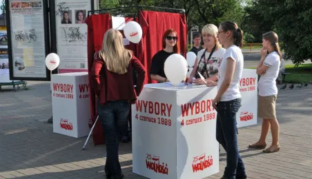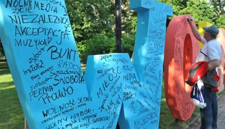 4 czerwca 2014 r. Toruń włączył się w ogólnopolskie obchody 25. rocznicy pierwszych częściowo wolnych wyborów, które zapoczątkowały proces przemian demokratycznych w naszym kraju. Na toruńskiej starówce została rozegrana gra miejska i Bieg Wolności, w Muzeum Okręgowym otwarto wystawę poświęconą toruńskiej drodze do wolności, a plastycy z Galerii Rusz podczas plenerowej akcji artystycznej pytali torunian, co rozumieją pod pojęciem "wolność". Wieczorem na Rynku Staromiejskim zabrzmiały przeboje lat 80. i 90. w wykonaniu zespołów: Sztywny Pal Azji i Armia oraz ukraińskiego Haydamaky. Fot. Małgorzata Litwin