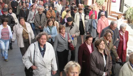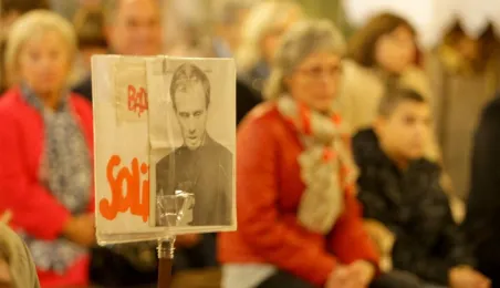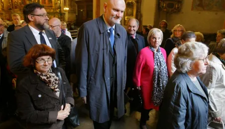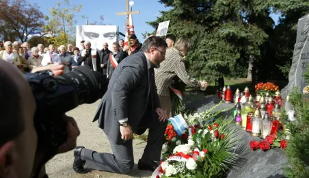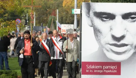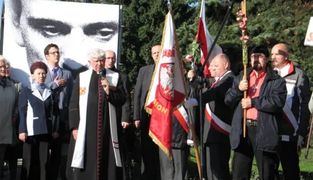 Uroczyste nabożeństwa, kwiaty i spotkania okolicznościowe w Toruniu i miejscach związanych z bł. ks. Jerzym Popiełuszką uczciły 17-19 października 2014 roku 30. rocznicę jego uprowadzenia i meczeńskiej śmierci z rąk funkcjonariuszy peerelowskiej służby bezpieczeństwa. Fot. Adam Zakrzewski