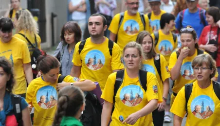 4 sierpnia 2014 r. z toruńskiej katedry śś. Janów wyruszyła XXXVI Piesza Pielgrzymka Diecezji Toruńskiej do Częstochowy. W 300-km trasę pątnicy szli żegnani przez duchownych, parlamentarzystów i władze miasta. Na Jasną Górę dotrą 12 sierpnia. Fot. Małgorzata Litwin