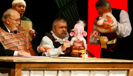 Jubileusz 65-lecia pracy artystycznej Antoniego Słocińskiego - aktora, reżysera, pedagoga teatru i wieloletniego dyrektora teatru Baj Pomorski w Toruniu - był wydarzeniem Toruńskich Spotkań Teatrów Jednego Aktora 23 listopada 2013. Aktorzy uczcili nestora teatru krótką inscenizacją wybranych scen z "Zemsty" Aleksandra Fredry, w reżyserii Zbigniewa Lisowskiego, z wykorzystaniem lalek mimicznych projektu Dariusza Panasa. W trakcie wieczoru jubilat otrzymał medal „Za Zasługi dla Miasta Torunia” na wstędze, przyznany Antoniemu Słocińskiemu przez Radę Miasta Torunia. Zdjecia: Adam Zakrzewski