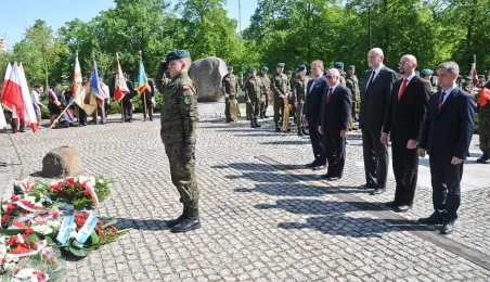 Toruń włączył się 8 maja 2015 r. w obchody 70. rocznicy zakończenia II wojny światowej. Uroczystości odbyły się pod pomnikiem „Ku czci poległych i pomordowanych przez hitlerowskiego najeźdźcę w latach 1939-1945” przy al. Św. Jana Pawła II w Toruniu. fot. Lech Kamiński