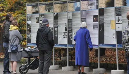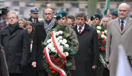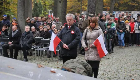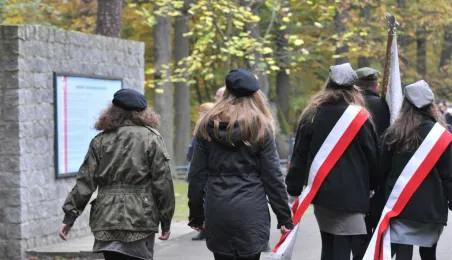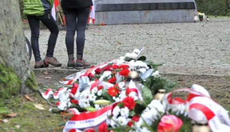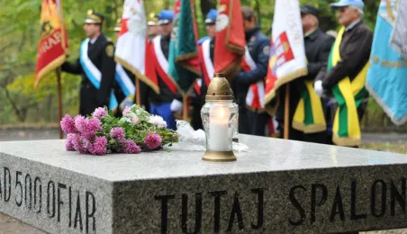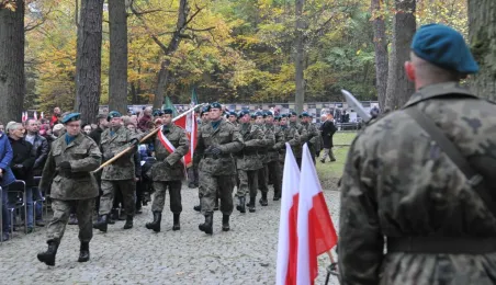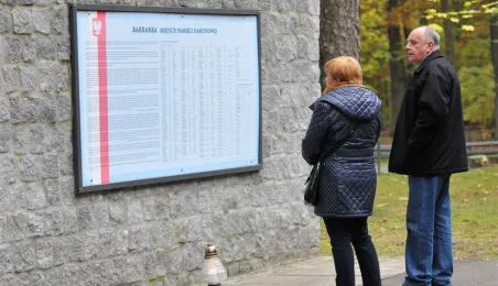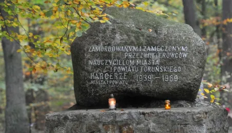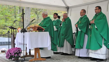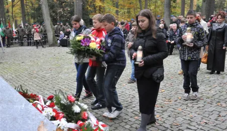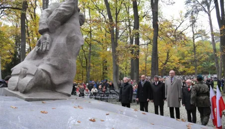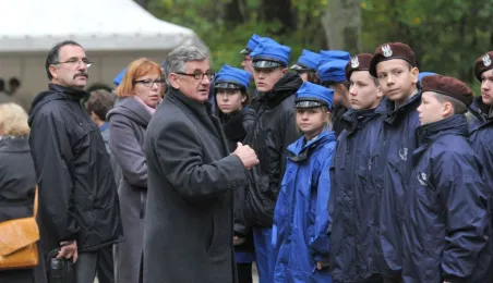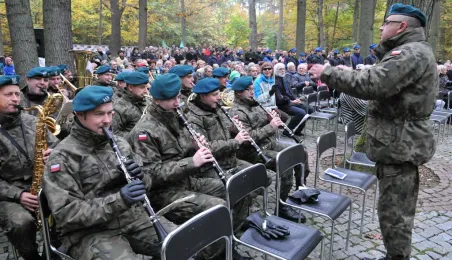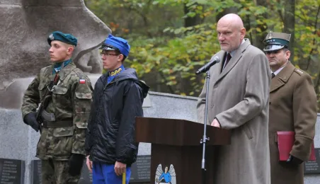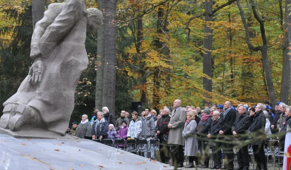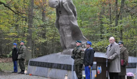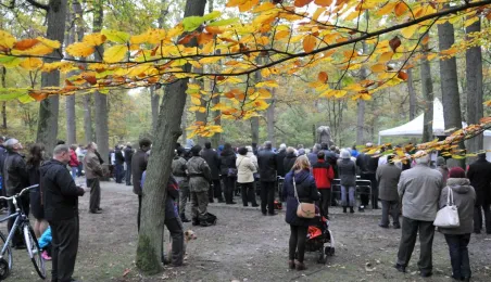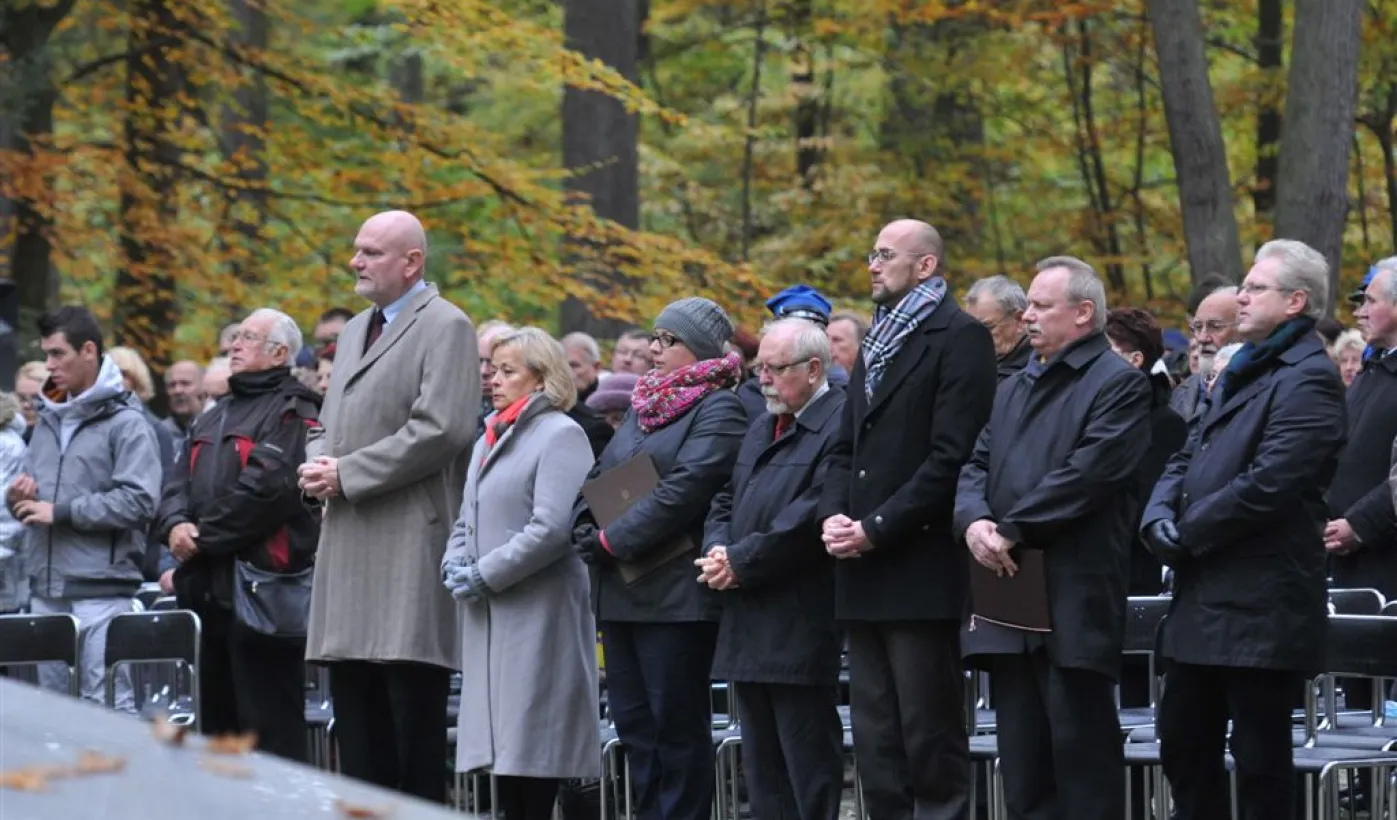 Msza św. i uroczyste złożenie kwiatów pod pomnikiem ofiar masowych egzekucji uczciły 26 października 2014 r. 75. rocznicę pierwszych straceń na Barbarce. Szacuje się, że jesienią 1939 r. w barbarskim lesie hitlerowcy rozstrzelali około 600 osób, głównie toruńskiej inteligencji. Fot. Małgorzata Litwin