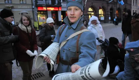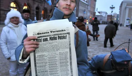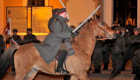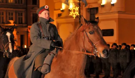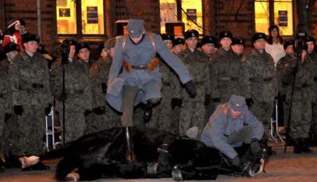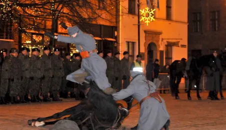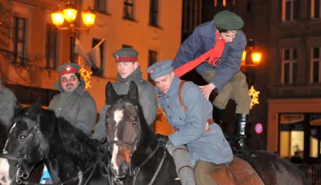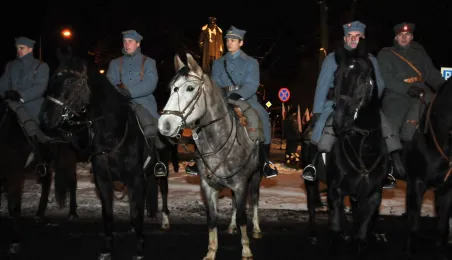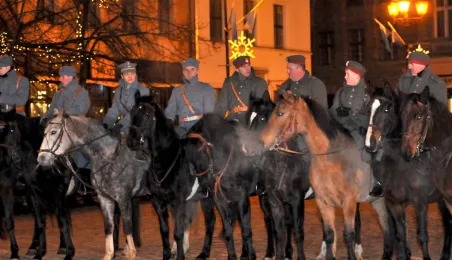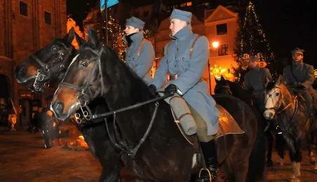 Chlebem i solą dziewczęta powitały w Toruniu gen. Hallera, na rynku zapłonęło ognisko, a szwadron jazdy konnej popisał się przed mieszkańcami walecznością i umiejętnościami jeździeckimi. Tak uczciliśmy 18 stycznia 2013 roku 93. rocznicę powrotu Torunia do wolnej Polski. Fot.: Małgorzata Litwin.