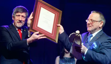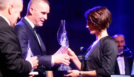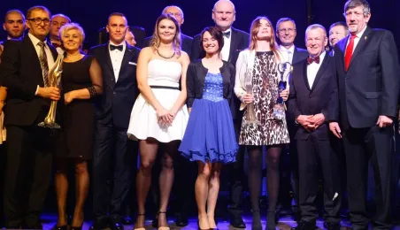 Blisko 400 osób bawiło się w Toruniu 7 lutego 2015 r. na dorocznym Balu Sportowca. Podczas imprezy ogłoszono wyniki XIII Plebiscytu "Nowości" na Sportowca Roku 2014. Tytuł ten zdobyła głosami 10513 czytelników pięściarka "Pomorzanina" Aneta Rygielska. Mlodzieżowcem roku został wybrany hokeista Remigiusz Gazda z MKS Sokoły. Medal Thorunium z rąk prezydenta Michała Zaleskiego otrzymał prezes CPP Toruń - Pacific Wojciech B. Sobieszak, m.in. za wieloletnie wsparcie klubu kolarskiego, którego wychowankiem jest Michał Kwiatkowski. Fot. Adam Zakrzewski