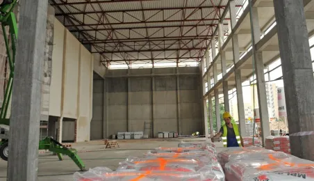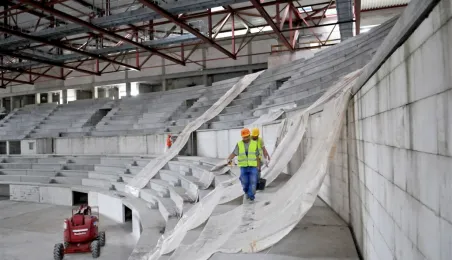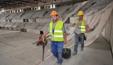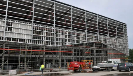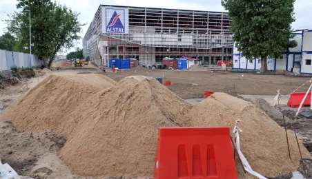 Budowa hali sportowo-widowiskowej przy ul. Bema w Toruniu. Wykonawcą inwestycji jest firma Alstal. Zdjęcia wykonane 5 lipca 2013 r. Fot. Małgorzata Litwin