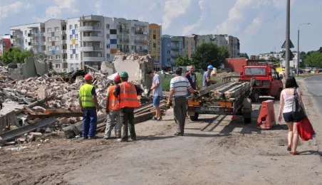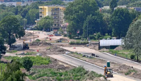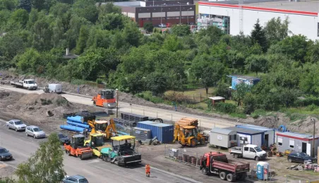 Budowa I etapu Trasy Średnicowej Północnej. Powstają dwie jezdnie po dwa pasy ruchu, chodniki i ścieżki rowerowe oraz skrzyżowania z ul. Grudziądzką, Szosą Chełmińską i Legionów. Inwestycja jest wspierana w połowie ze środków unijnych: Regionalnego Programu Operacyjnego Województwa Kujawsko-Pomorskiego na lata 2007-2013. Zdjęcia z 4 lipca 2013 r. Fot. Małgorzata Litwin