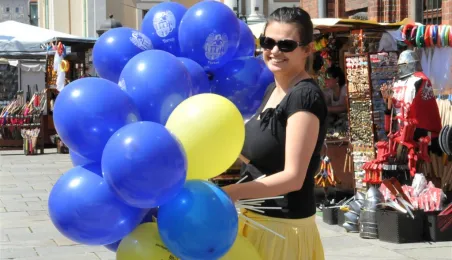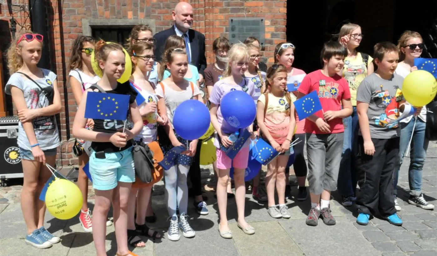23 maja 2014 roku, na dwa dni przez wyborami do Parlamentu Europejskiego, podczas happeningu „Budzimy Toruń!” torunianie zgromadzili się pod Ratuszem Staromiejskim i symbolicznie obudzili wyborców do wzięcia udziału w niedzielnym głosowaniu. Fot. Małgorzata Litwin