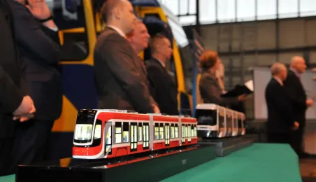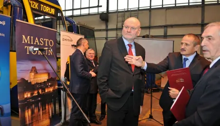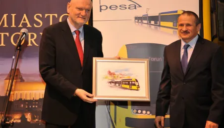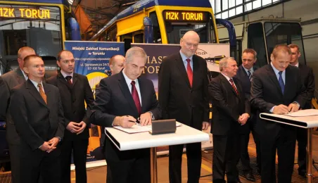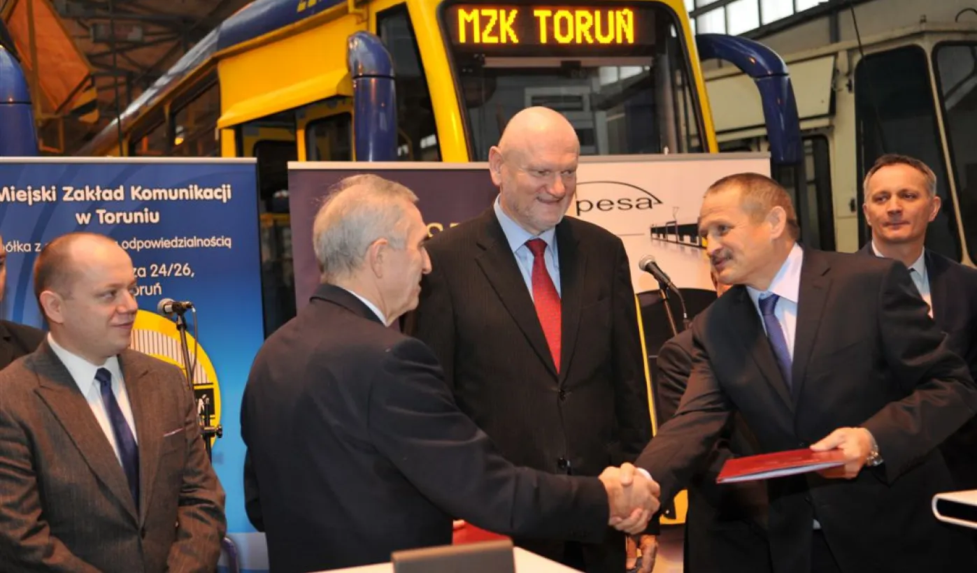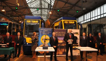Bydgoska firma PESA dostarczy do Torunia 12 supernowoczesnych tramwajów typu Swing. 18 grudnia 2013 r. Miejski Zakład Komunikacji w Toruniu podpisał umowę na zakup nowego taboru, sfinasowanego z udziałem funduszy unijnych. Pierwsze tramwaje pojawią się w Toruniu jesienią 2014 r. Fot. Małgorzata Litwin