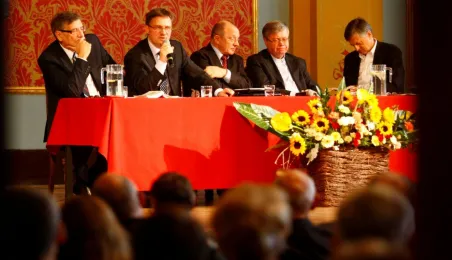 „Prawda i uczciwość w sferze publicznej” były tematem tegorocznych spotkań z cyklu „Colloquia Torunensia” 9 listopada 2013 r. To już 19. debata, podczas której filozofowie, etycy, socjologowie, duchowni, przedstawiciele samorządu i świata mediów dyskutowali w Toruniu o aktualnych problemach dialogu społecznego, filozoficznego i międzykulturowego. W tegorocznym spotkaniu wzięli udział: prof. Andrzej Szahaj – filozof polityki (UMK), ks. prof. Alfred Wierzbicki – etyk polityki (KUL), red. Paweł Wroński – publicysta („Gazeta Wyborcza”), prof. Andrzej Zybertowicz – socjolog polityki (UMK), a moderatorem dyskusji był prof. Ryszard Wiśniewski. Spotkanie zorganizowali: Uniwersytet Mikołaja Kopernika, Urząd Miasta Torunia, Kuria Diecezjalna Toruńska i Towarzystwo Naukowe w Toruniu. Zdjęcia: Adam Zakrzewski