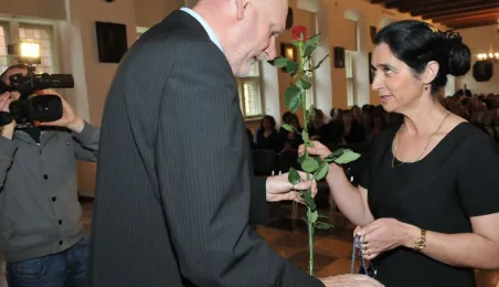W Ratuszu Staromiejskim 21 listopada 2014 r. odbyło się uroczyste spotkanie z okazji Dnia Pracownika Socjalnego. Kilkunastu zasłużonym pracownikom Miejskiego Ośrodka Pomocy Rodzinie w Toruniu prezydent Michał Zaleski wręczył listy gratulacyjne oraz nagrody okolicznościowe. Fot. Małgorzata Litwin