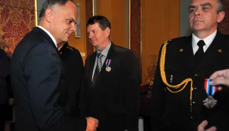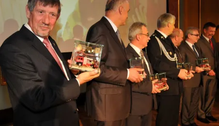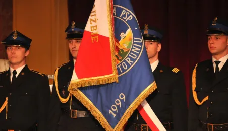 6 maja 2014 r., dwa dni po świętym Florianie, swoje patronalne święto obchodzili toruńscy strażacy. Podczas gali w Dworze Artusa najlepsi otrzymali z rąk swoich przełożonych medale, nagrody i nominacje na stopnie awansu zawodowego, a komendant toruńskiej straży st. bryg. mgr inż. Kazimierz Stafiej medal prezydenta Torunia - Thoruniu. Gośćmi uroczystości byli podsekretarz stanu w MSW, minister Grzegorz Karpiński oraz znakomita polska pływaczka, Otylia Jędrzejczak. Fot. Małgorzata Litwin