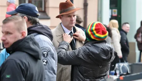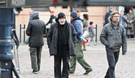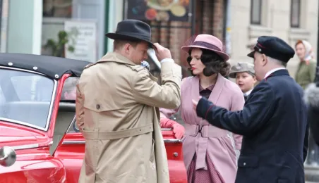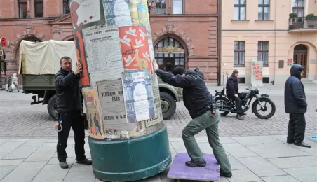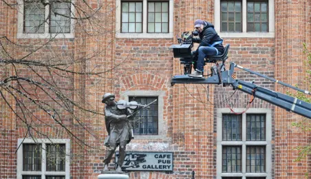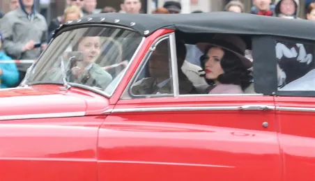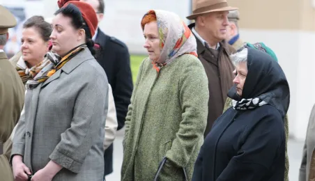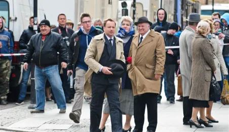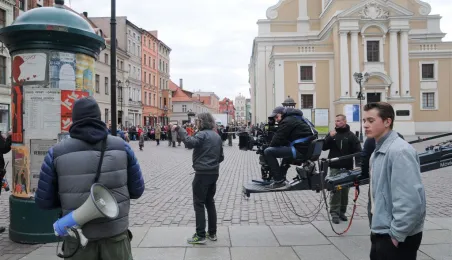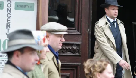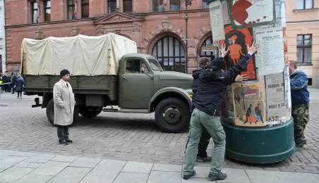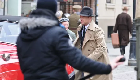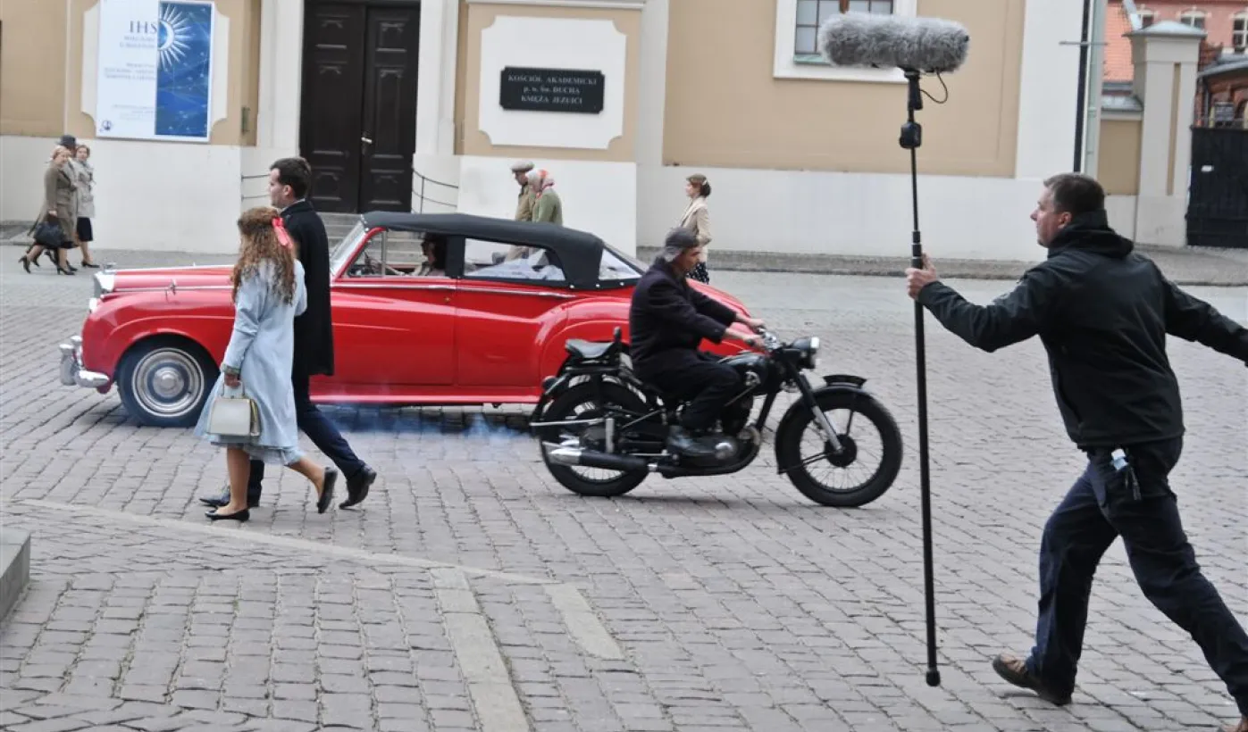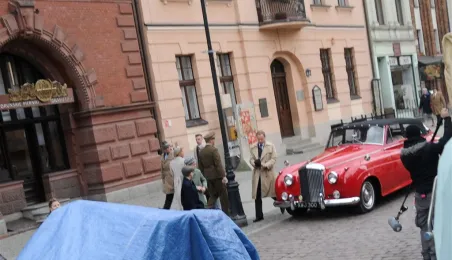 Rynek Staromiejski w Toruniu przeobraził się 18 kwietnia 2015 r. w scenerię z lat 50. XX w. W minioną sobotę trwały tam zdjęcia do "Excentryków" - najnowszej produkcji reżysera Janusza Majewskiego. W filmie występują m.in. Maciej Stuhr, Sonia Bohosiewicz, Anna Dymna, Wojciech Pszoniak oraz Wiktor Zborowski. Fot. Lech Kamiński