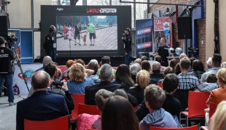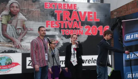 23 podróżników opowiadało o wyprawach swojego życia 2-3 kwietnia w MCSM podczas I Extreme Travel Festival, który odbył się w Międzynarodowym Centrum Współpracy Młodzieży. Imprezę zorganizowali przy wsparciu miasta Eliza i Wojciech Łopacińscy z Torunia, którzy w 393 dni – od czerwca 2014 r. do lipca 2015 r. przebyli wraz z dwójką swoich nastoletnich dzieci 114 tys. km na 5 kontynentach, prawie trzy razy okrążając kulę ziemską. Fot. Lech Kamiński