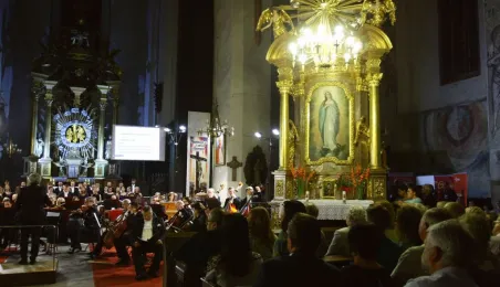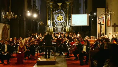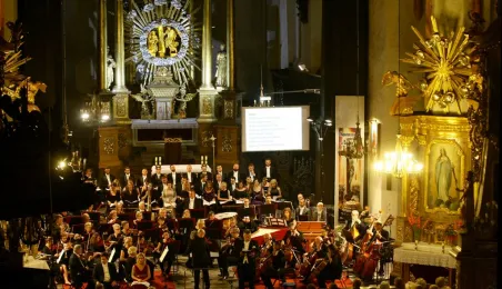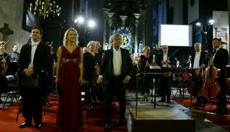 Arcydzieło sztuki oratoryjnej, "Stworzenie świata" Józefa Haydna, zabrzmiało w Toruniu podczas finałowego wieczoru Festiwalu Nova Muzyka i Architektura 2015. Koncert odbył się 29 sierpnia w gotyckim kościele Wniebowzięcia Najświętszej Marii Panny. Wystąpili znakomici soliści: Aleksandra Kubas-Kruk, Nicholas Mulroy, Bogdan Makal i Jerzy Butryn. Towarzyszył im czołowy zespół polskiej sceny muzyki chóralnej - Chór Narodowego Forum Muzyki z Wrocławia pod dyrekcją Andrzeja Kosendiaka, dyrektora Narodowego Forum Muzyki, profesora Akademii Muzycznej w Gdańsku. Koncert poprowadzi ła Magdalena Miśka- Jackowska, dziennikarka RMF Classic. Fot. Adam Zakrzewski