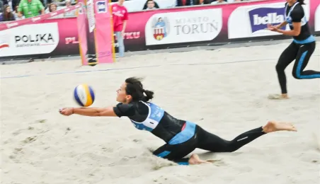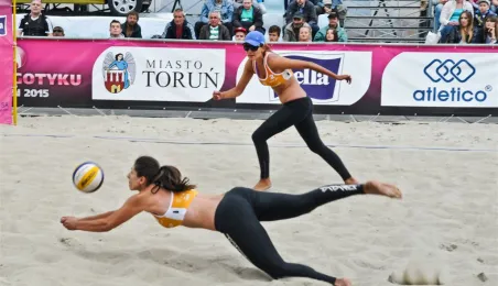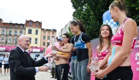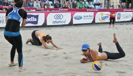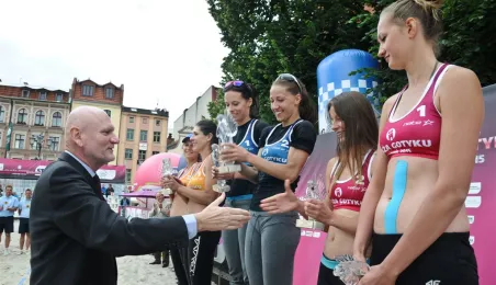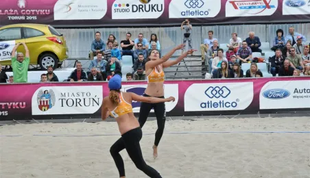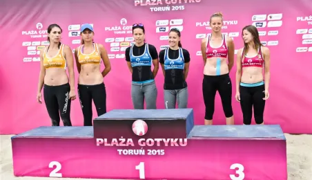 77 drużyn rywalizowało w tegorocznym turnieju Plaża Gotyku Toruń 2015. Podczas finałów 20-21 czerwca Grand Prix Polski Kobiet wywalczyła para Magdalena Saad i Aleksandra Theisi, wśród mężczyzn najlepsi okazali się Kacper Kujawiak i Michał Bryl. Fot. Lech Kamiński