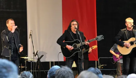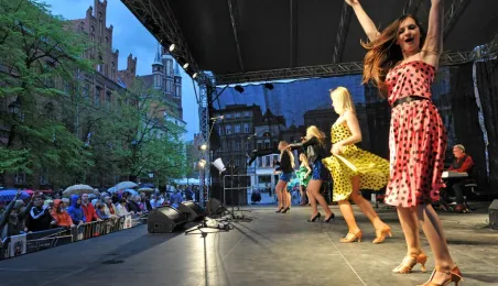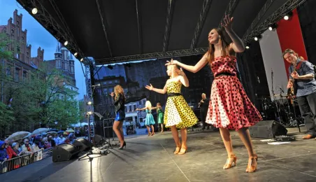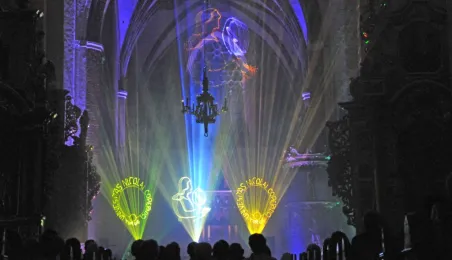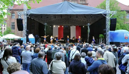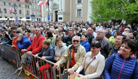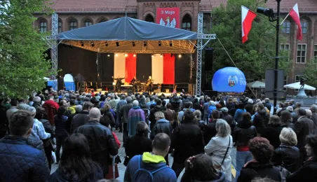 W oprawie obchodów Narodowego Święta Konstytucji 3 maja 2016 r. w Toruniu odbyły się koncerty szwedzkiego Gotlands Blasarquintett i Multicameraty w Dworze Artusa (w ramach festiwalu Probaltica) oraz zespołów Hands Up! oraz VOX na Rynku Staromiejskim. Późnym wieczorem w katedrze został zaprezentowany spektakl laserowy "Chrześcijańskie dzieje Polski". Fot. Małgorzata Litwin