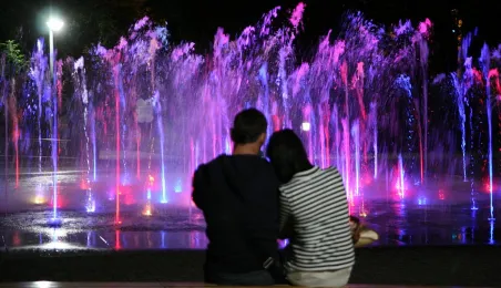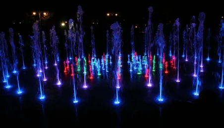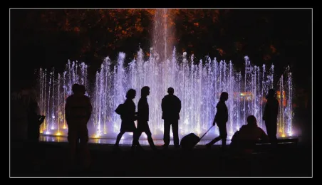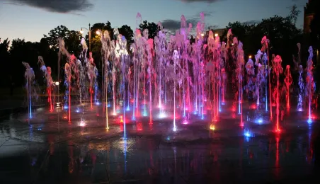 Układy wodne za dnia oraz kolorowe światła, efekty wodne i muzyka wieczorami i nocą. Widowiskowe pokazy fontanny Cosmopolis są jedną z najpopularniejszych atrakcji Torunia, przyciągającą codziennie w sezonie tłumy mieszkańców i turystów. Fot. Małgorzata Litwin, Daniel Pach.