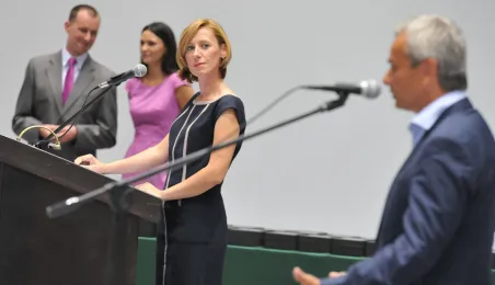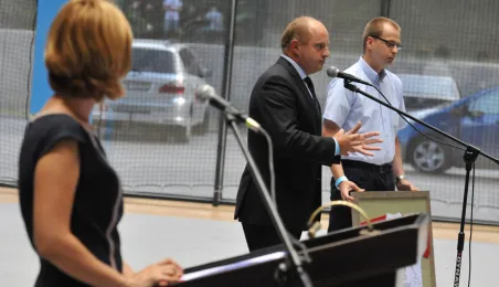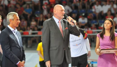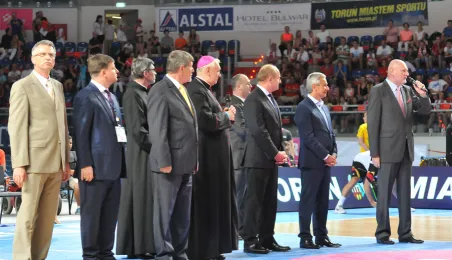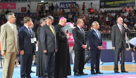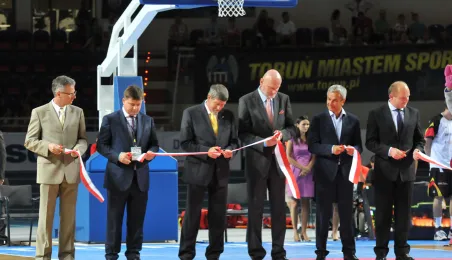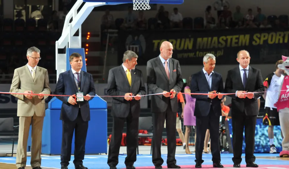 10 sierpnia w nowej hali sportowo-widowiskowej reprezentacja Polski pokonała kadrę Niemiec 68:67. Tego dnia oficjalnie zainaugurował swoją działalność nowy obiekt w Toruniu. Mecz poprzedziły oficjalne uroczystości, podczas których odbyło się oficjalne przecięcie biało-czerwonej wstęgi. fot. Łukasz Klimkiewicz