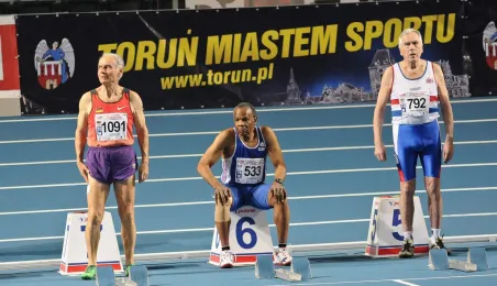 W hali sportowo-widowiskowej przy ul. Bema w Toruniu trwają X Halowe Mistrzostwa Weteranów Lekkiej Atletyki. Fot. Lech Kamiński