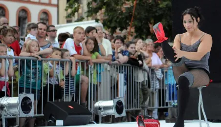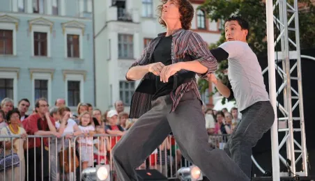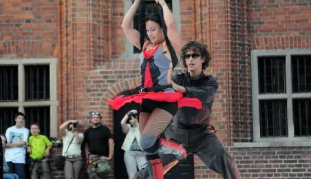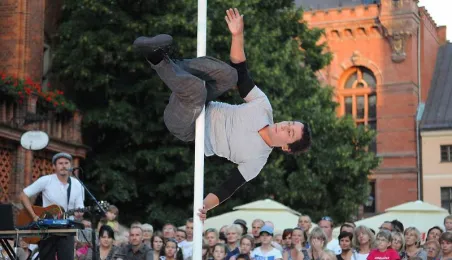 Hiszpańska Fiesta w Toruniu 2011. Pokazy grupy cyrkowej Atempo Circ na Rynku Staromiejskim. Toruń, 20.07.2011 r. Fot. Małgorzata Litwin.