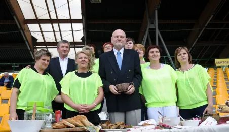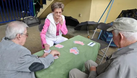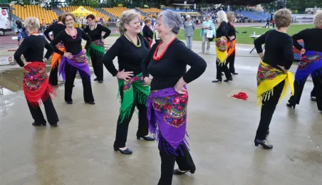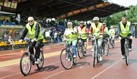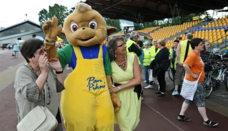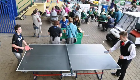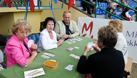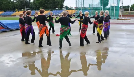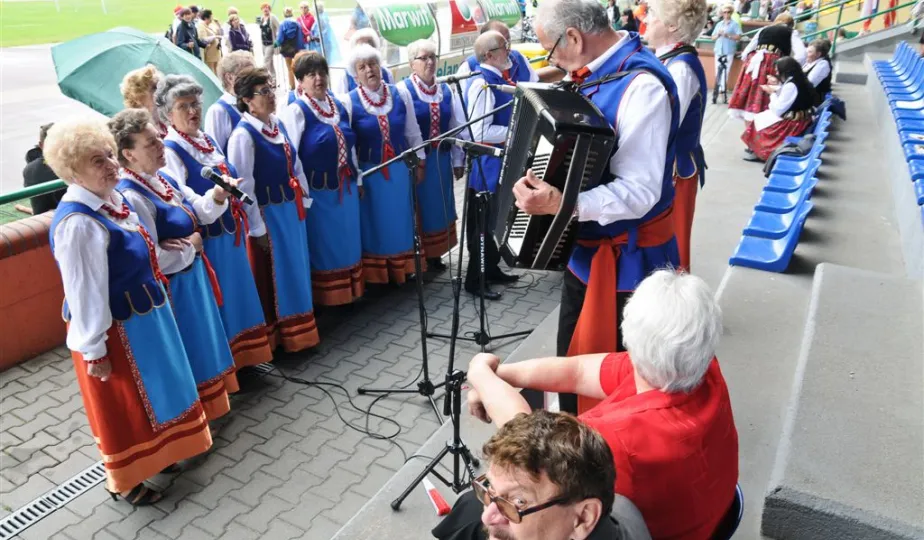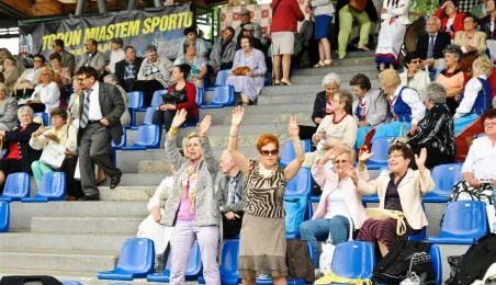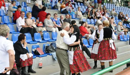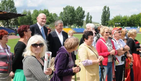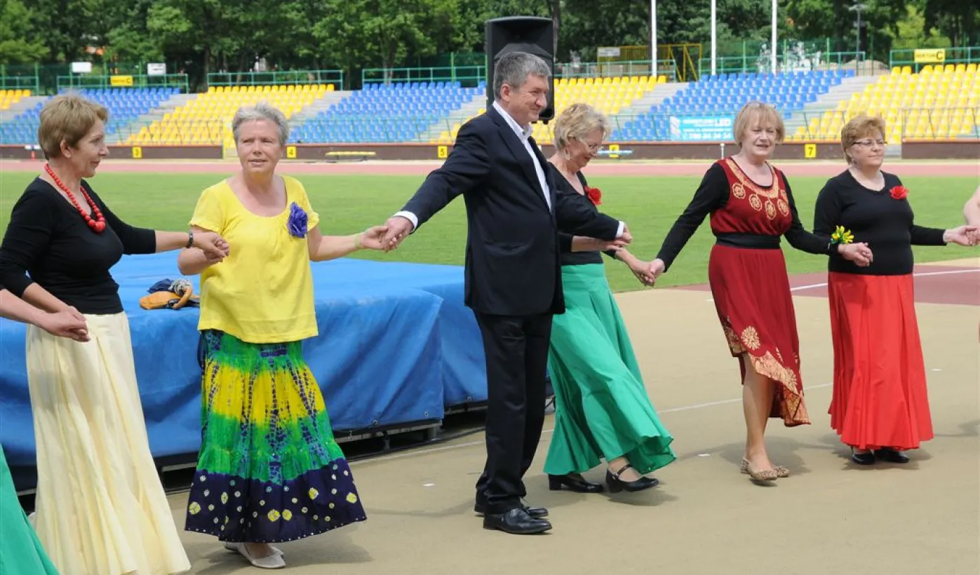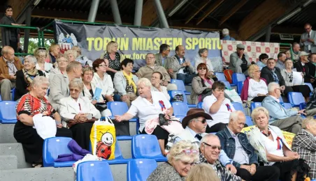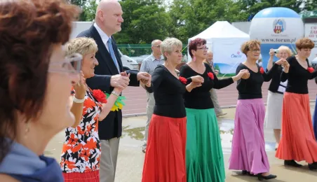 Pod hasłem „Jesteśmy” 21 czerwca 2015 r. na Stadionie Miejskim odbyła się pierwsza w historii miasta Senioriada. To zainicjowany przez Radę Seniorów przy Prezydencie Miasta Torunia festyn dla seniorów, będący okazją do prezentacji tej grupy społecznej – jej energii, potencjału, twórczości, ale również problemów. Mimo ulewy humory dopisywały, a do tańca z seniorami ruszył także prezydent Torunia. Fot. Lech Kamiński
