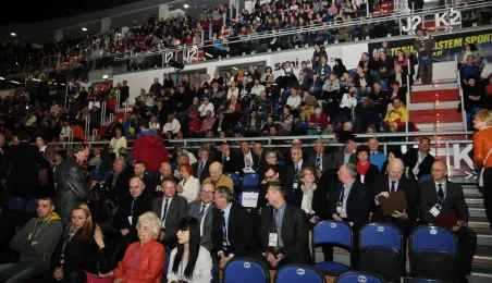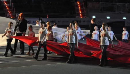 W niedzielę, 22 marca 2015 r. w Toruniu rozpoczęły X Halowe Mistrzostwa Europy Weteranów Lekkiej Atletyki. Aż do 28 marca w Toruniu można będzie zobaczyć 2400 zawodników z 44 państw, w tym 20 olimpijczyków, 21 konkurencji i prawie 440 dekoracji medalowych. Zawody odbywają się w hali sportowo-widowiskowej przy ul. Bema codziennie od godz. 9.00 do 21.00. Wstęp bezpłatny. Ceremonię otwarcia mistrzostw w niedzielę, 22 marca 2015 r. uświetnił koncert światowej muzyki filmowej w wykonaniu Toruńskiej Orkiestry Symfonicznej. Fot. Lech Kamiński