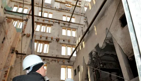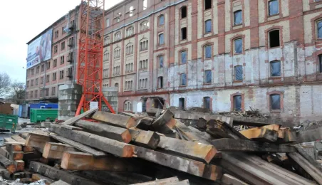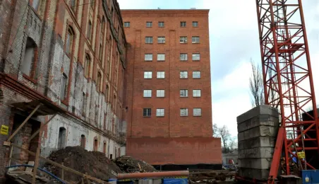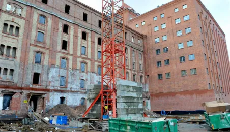 Fotografie z placu budowy: adaptacja Młynów Toruńskich na Centrum Nowoczesności "Młyn wiedzy", Europejskie Centrum Spotkań Młodzieży, Toruński Inkubator Technologiczny. Fot.: Małgorzata Litwin, 1.02.2013.