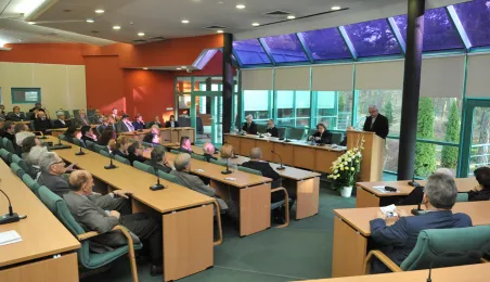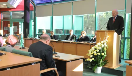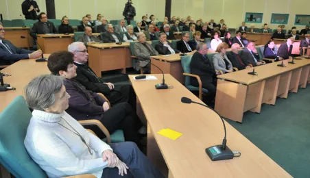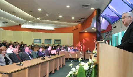 24 listopada 2014r odbyła się jubileuszowa sesja nadania św. Janowi Pawłowi II doktoratu honoris causa Uniwersytetu Mikołaja Kopernika. Była to część dwudniowych obchodów, podczas których m.in. odprawiona została jubileuszowa msza święta w kościele akademickim pw. Św. Ducha w Toruniu. Fot. Łukasz Klimkiewicz