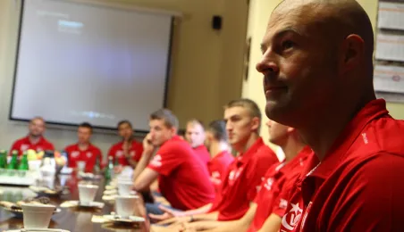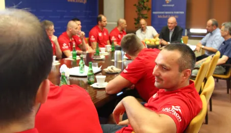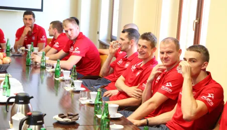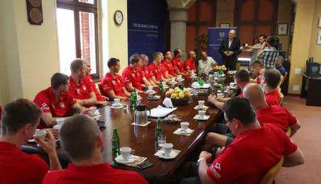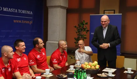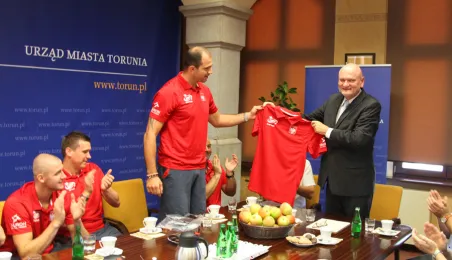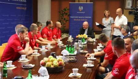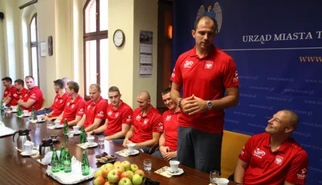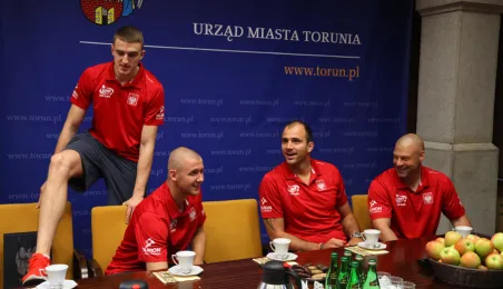 Reprezentacja Polski koszykarzy 7 sierpnia spotkała się z prezydentem Torunia Michałem Zaleskim. Podopieczni Mike’a Taylora w miniony weekend wygrali rozgrywany w nowej hali sportowo-widowiskowej Toruń Basket Cup. Przygotowują się również do niedzielnego spotkania z Niemcami w ramach eliminacji do Euro Basket 2015. fot. Łukasz Klimkiewicz