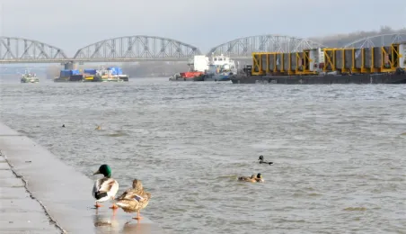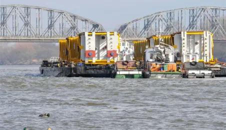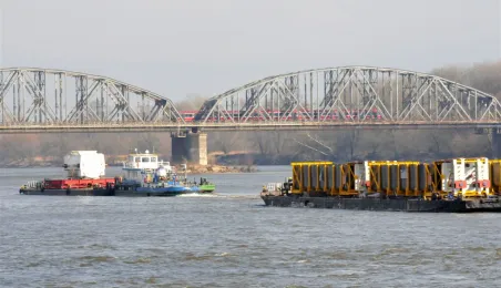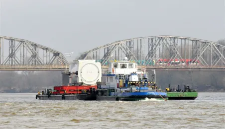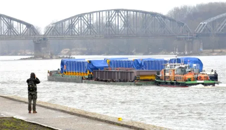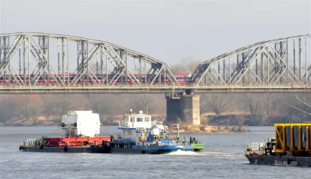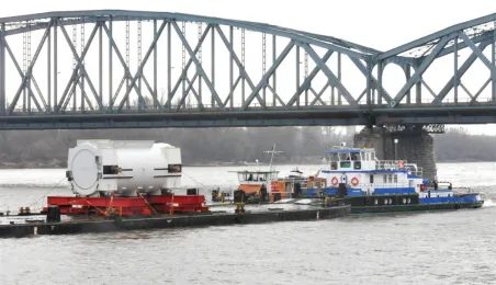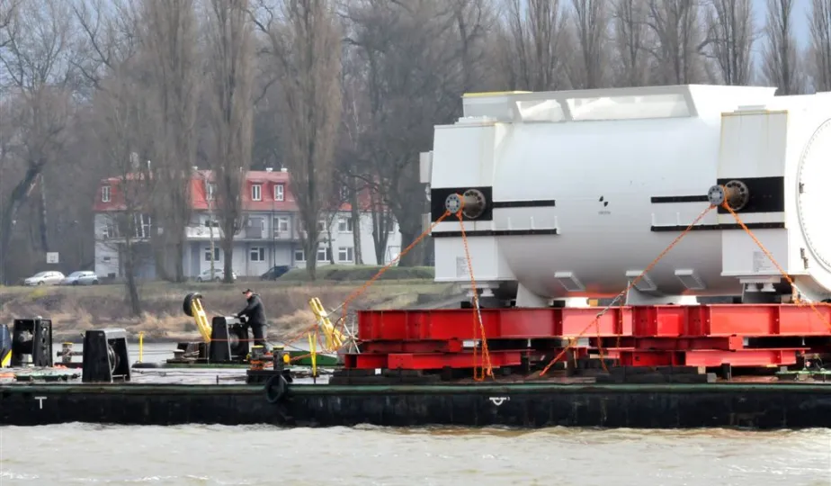 19 marca 2014 r. przez Toruń przepłynął konwój 12 barek i 9 statków. Ogromne jednostki wiozą 3 tys. ton elementów do bloku energetycznego Elektrociepłowni Stalowa Wola. Fot. Małgorzata Litwin
