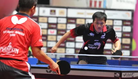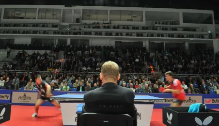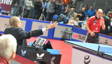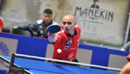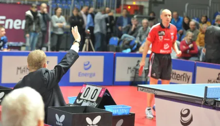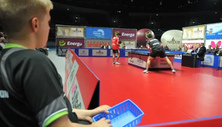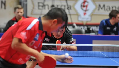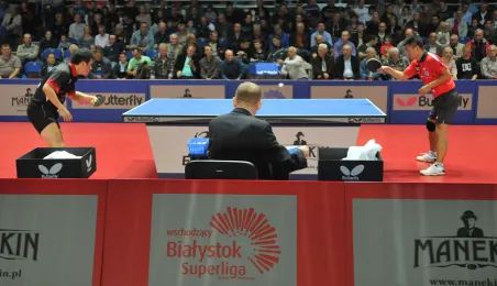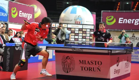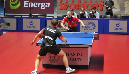 7 października 2014r. w hali widowiskowo sportowej, KST Energa-Manekin Toruń zmierzyła się z drużyną Dojlidy Białystok. Mecz pingponga zakończył się wynikiem 3:2 dla Torunian. fot. Łukasz Klimkiewicz
