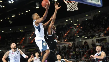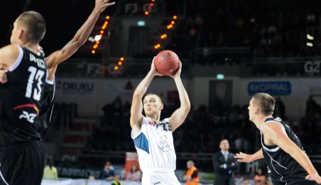 Koszykarze Polskiego Cukru Toruń wygrali w niedzielę, 11 października 2015 r. z wicemistrzem Polski, PGE Turowem Zgorzelec 86:70. Mecz w Arenie Toruń przy ul. Bema zainaugurował po wakacyjnej przerwie Polską Ligę Koszykówki Mężczyzn. Fot. Lech Kamiński