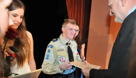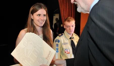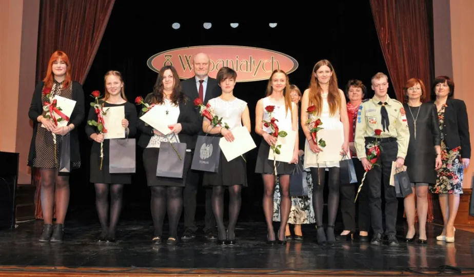 Siedmioro młodych torunian znalazło się w tegorocznym miejskim finale samorządowego konkursu dla nastolatków "Osmiu Wspaniałych 2015". 14 kwietnia 2015 r. w Młodzieżowym Domu Kultury laureaci i wyróżnieni otrzymali z rąk prezydenta Torunia Michała Zaleskiego odznaki Wspaniałego, dyplomy i nagrody rzeczowe. Fot. Małgorzata Litwin