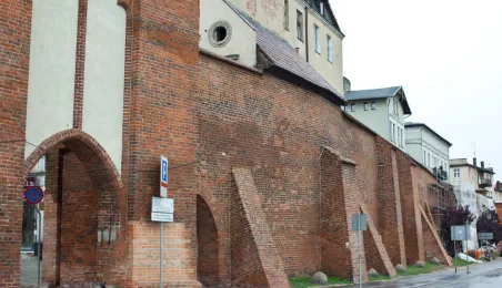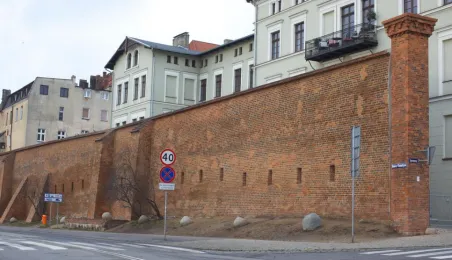 Mury obronne Torunia od strony Wisły. Fotografie zostały wykonane w ramach realizacji projektu "Toruńska Starówka - ochrona i konserwacja dziedzictwa kulturowego UNESCO", autor zdjęć: Piotr Furman.
