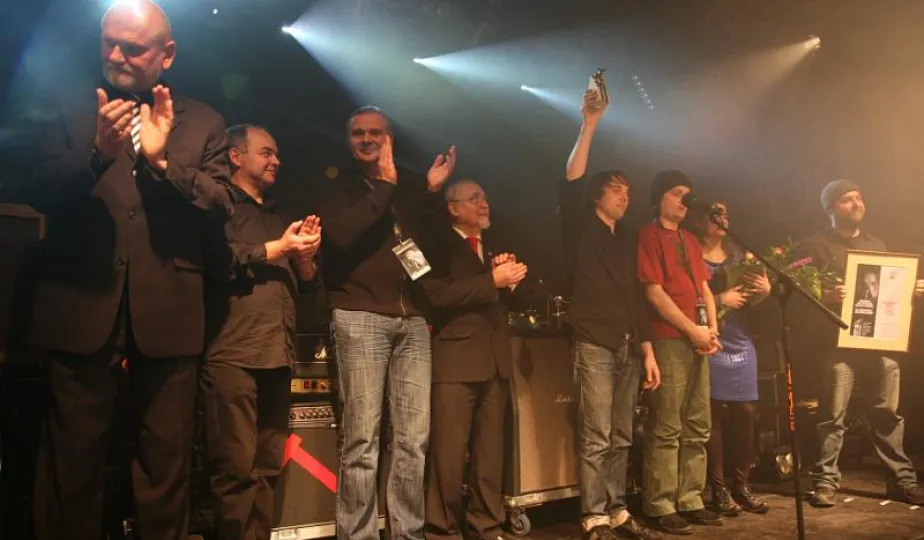 Koncert pamięci Grzegorza Ciechowskiego, wręczenie nagrody im. Grzegorza Ciechowskiego dla zespołu Pustki. Toruń, 19 grudnia 2009. Fot. Magdalena Kujawa.