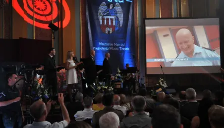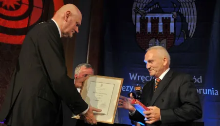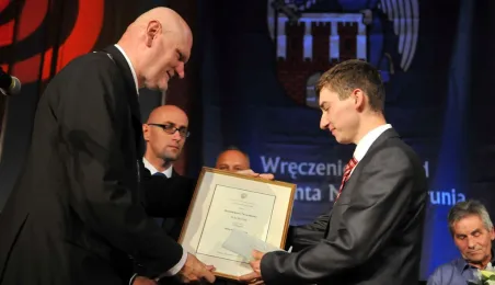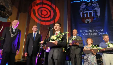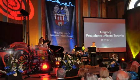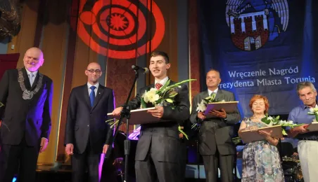 Jak co roku podczas Święta Miasta prezydent uhonorowal mieszkanców zasłużonych dla Torunia w minionym roku. Nagroda Prezydenta Torunia jest wręczana w 8 kategoriach, a w tym roku otrzymali ją: sportowiec i trener Henryk Żołnowski, ks. Krzysztof Winiarski - szef michalickiego Oratorium dla dzieci na Rybakach, Wiesława Kowalska - nauczycielka i promotorka turystyki z Zespołu Szkół nr 24, Zenon Nienartowicz - założyciel Stowarzyszenia „Jestem”, przedsiębiorca Romuald Gierszal - twórca firmy Optiguard, strażak Rafał Świechowicz - animator międzynarodowych zawodów pożarniczych o tytuł „Najtwardszego Strażaka”, Piotr Olecki - założyciel Fundacji Muzeum Historyczno-Wojskowego, Marta Jasińska - Sztela - lekarka neurolog ze Szpitala Miejskiego i dwaj bohaterowie, którzy uratowali tonących w Wiśle: Stefan Czachowski i student Dominik Nowak. Gala wręczenia nagród odbyła się w Dworze Artusa 19 czerwca 2013 r. Fot. Małgorzata Litwin