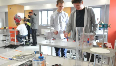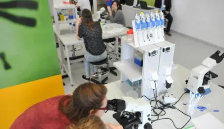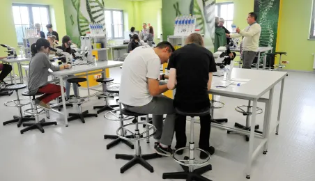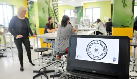 Od 9 października 2014r. z oferty Centrum Nowoczesności Młyn Wiedzy można wybrać zajęcia w specjalistycznych pracowniach: biologicznej i fizycznej. Nacisk jest położony na pracę eksperymentalną uczniów, a zajęcia zostały skonstruowane w ten sposób, aby sprzyjały prowadzeniu przez uczestników procesu badawczego, od hipotezy, poprzez planowanie doświadczeń ją sprawdzających, po jej weryfikację doświadczalną i wnioski. fot. Małgorzata Litwin