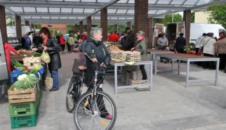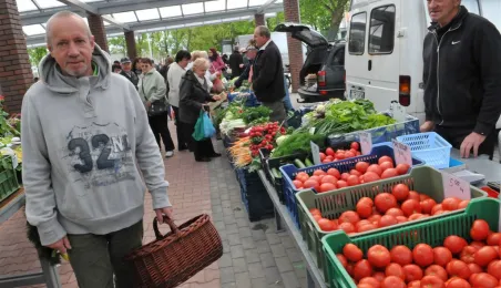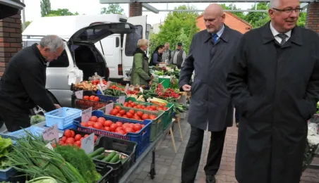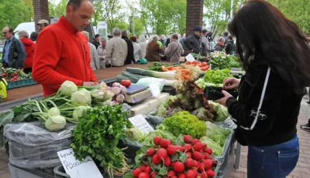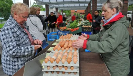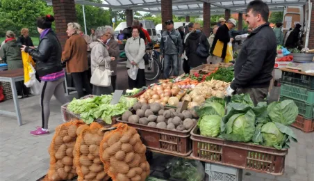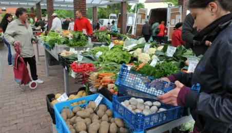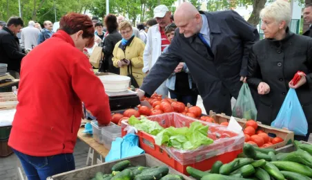 Toruń ma nowy zielony rynek! 16 maja 2014 r. zostało otwarte targowisko na Podgórzu, w rejonie ulic Okólnej i Jabłońskiego. Inwestycję zrealizowała - kosztem 700 tys. zł - spółka Targi Toruńskie, a miejsce wskazali mieszkańcy lewobrzeża - w przeprowadzonych przez miasto konsultacjach społecznych. Fot. Małgorzata Litwin