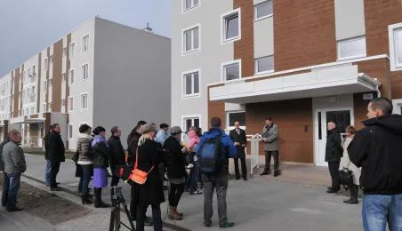 Fotrografie z wręczenia kluczy do mieszkań lokatorom kolejnego budynku komunalnego wybudowanego przez miasto przy ul. Andersa. Toruń, 30 października 2012 r. Fot.: Małgorzata Litwin.