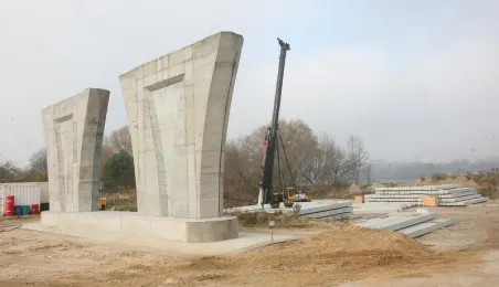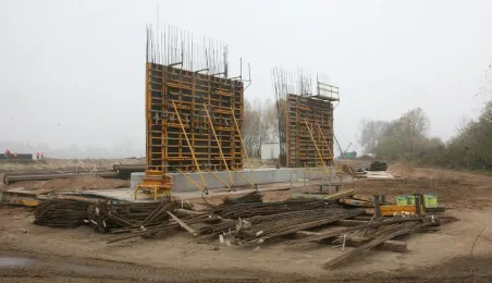 Rok budowy nowego mostu dla Torunia. Fotografie zostały wykonane na budowie toruńskiego mostu przez Wisłę, rok po rozpoczęciu inwestycji. Toruń, 4 listopada 2011 r. Fot.: Filip Tomasik.