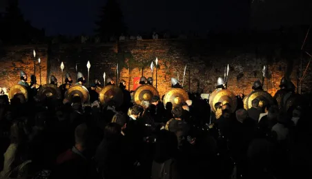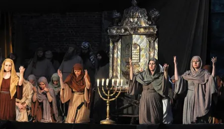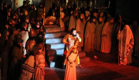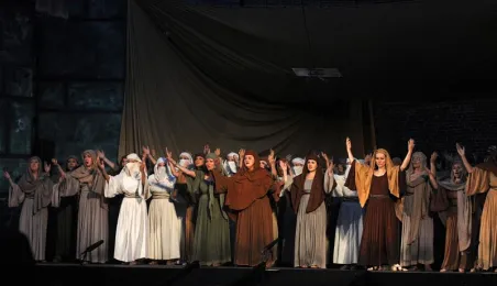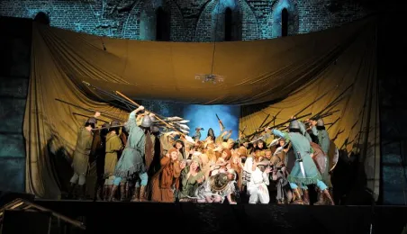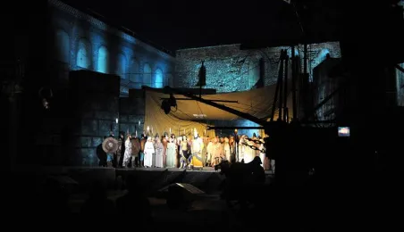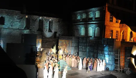 Plenerowa inscenizacja Nabucco Giuseppe Verdiego, w wykonaniu artystów bydgoskiej Opery Nova. Toruń, 5 lipca 2009 r. Fot. Paweł Wiśniewski.