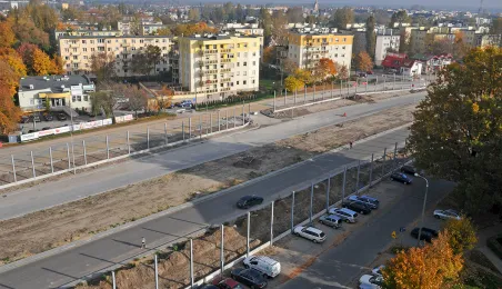 Na budowie I etapu Trasy Średnicowej w Toruniu - odcinka między Szosą Chełmińską a ul. Grudziądzką - trwają intensywne prace: wzmacnianie podłoża, budowa sieci sanitarnej i wodociągowej oraz prace brukarskie. Budowa jest dofinansowana w 50 proc. z funduszy unijnych w ramach Regionalnego Programu Operacyjnego Województwa Kujawsko-Pomorskiego na lata 2007-2013. Zdjęcia z 15 października 2013. Fot. Małgorzata Litwin