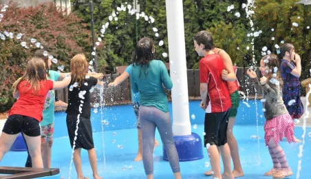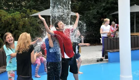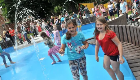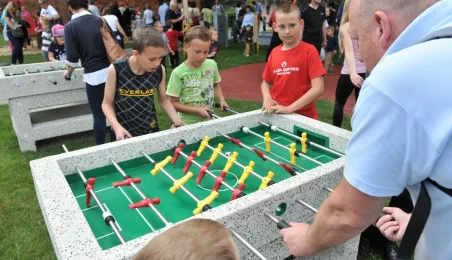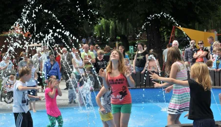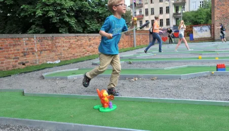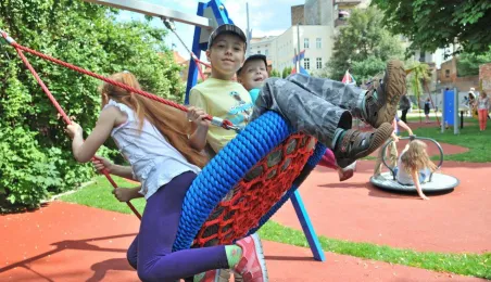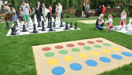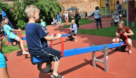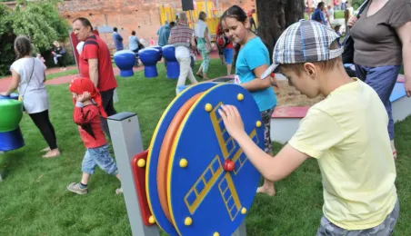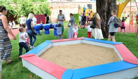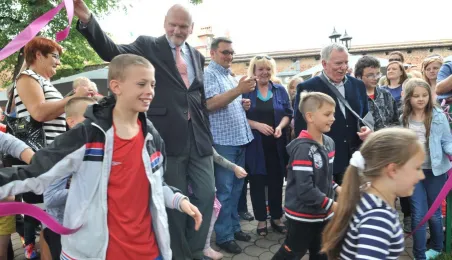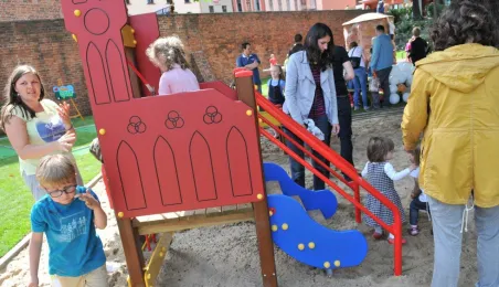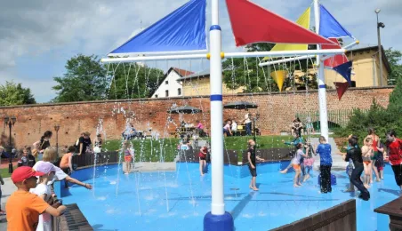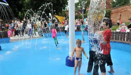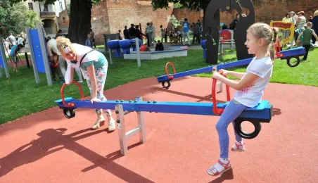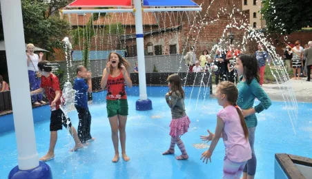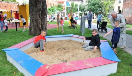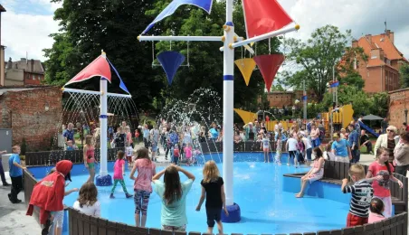 Po gruntownej modernizacji 27 czerwca 2015 r. został otwarty plac zabaw „Piernikowe Miasteczko” na toruńskiej starówce. Entuzjazm dzieci wzbudziły szczególnie nowe atrakcje, jak m.in. wodny plac zabaw z tryskającymi dyszami, pola do minigolfa i gdy w szachy, instrumenty muzyczne czy stoły do piłkarzyków. Modernizacja placu kosztowała 843 tys. zł, a prace wykonała firma Faternus Service z Chorzowa. Fot. Małgorzata Litwin