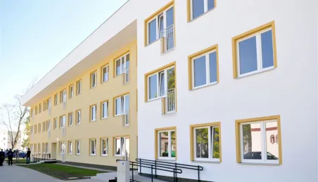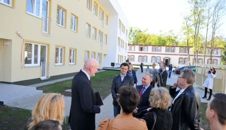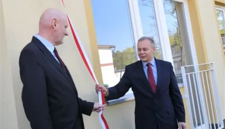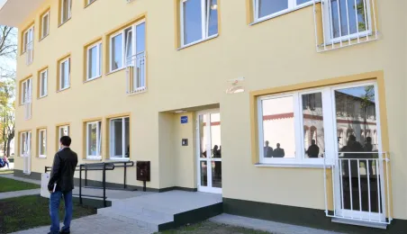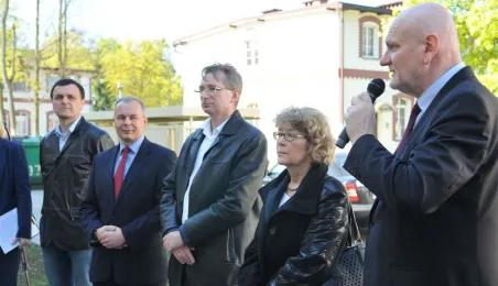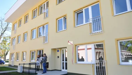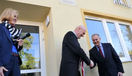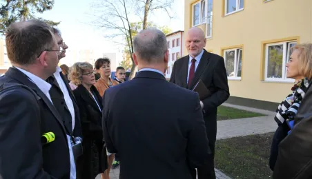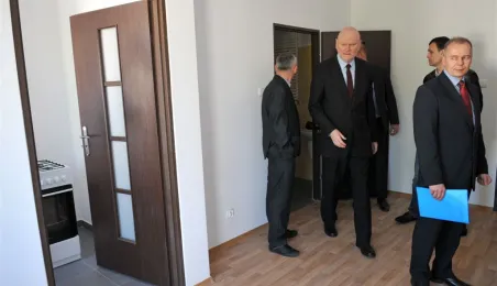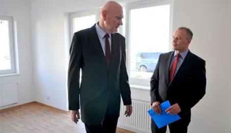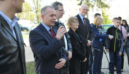 27 kwietnia 2015 r. Prezydent Torunia przekazał klucze pierwszym lokatorom bloku komunalnego przy ul. Armii Ludowej 77 B. Gościem uroczystości był Bogusław Białowąs, zastępca dyrektora Departamentu Usług Agencyjnych Banku Gospodarstwa Krajowego, który współfinansuje inwestycję z Funduszu Dopłat. Fot. Małgorzata Litwin