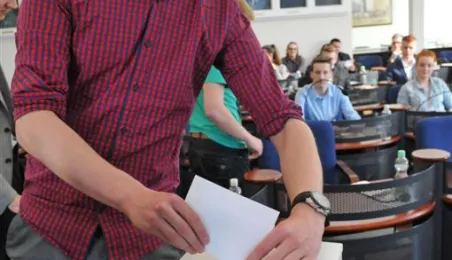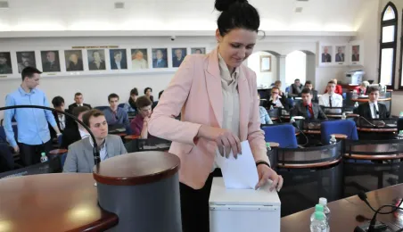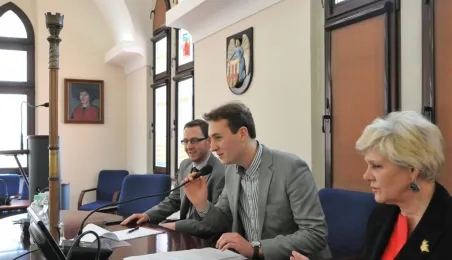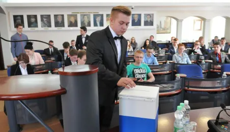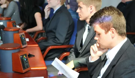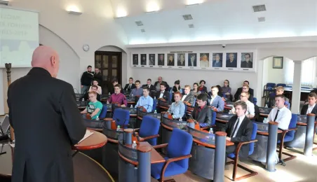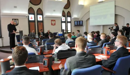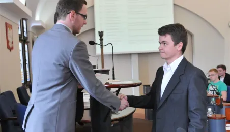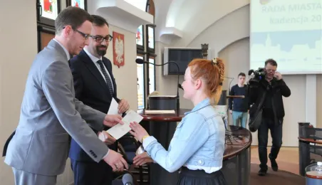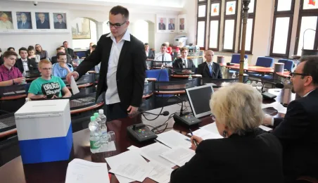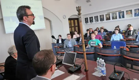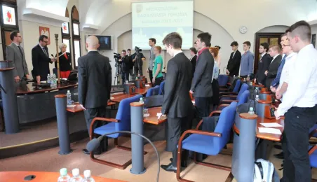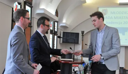 Na swojej pierwszej sesji zebrała się 29 kwietnia 2015 roku Młodzieżowa Rada Miasta Torunia kadencji 2015-2017. W jej skład wchodzi po dwóch przedstawicieli z co najmniej połowy szkół toruńskich ponadgimnazjalnych. Młodzieżowi radni mogą mieć nie więcej niż 21 lat. Podczas pierwszej sesji 29 kwietnia młodzi radni złożyli ślubowanie i odebrali akty powołania w skład Młodzieżowej Rady Miasta Torunia Rady. Wybrano też jej przewodniczącego - został nim Paweł Gotowt. Fot. Małgorzata Litwin